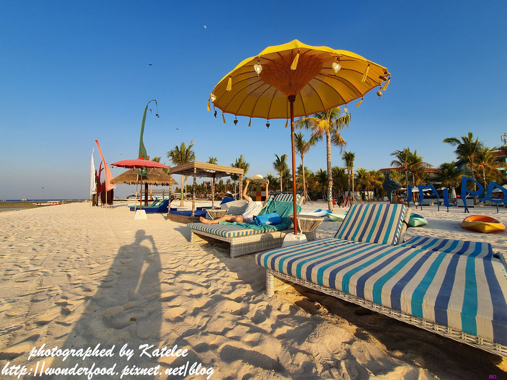 沙灘旁放了各式各樣很蘇胡的沙發椅,非常有渡假的感覺