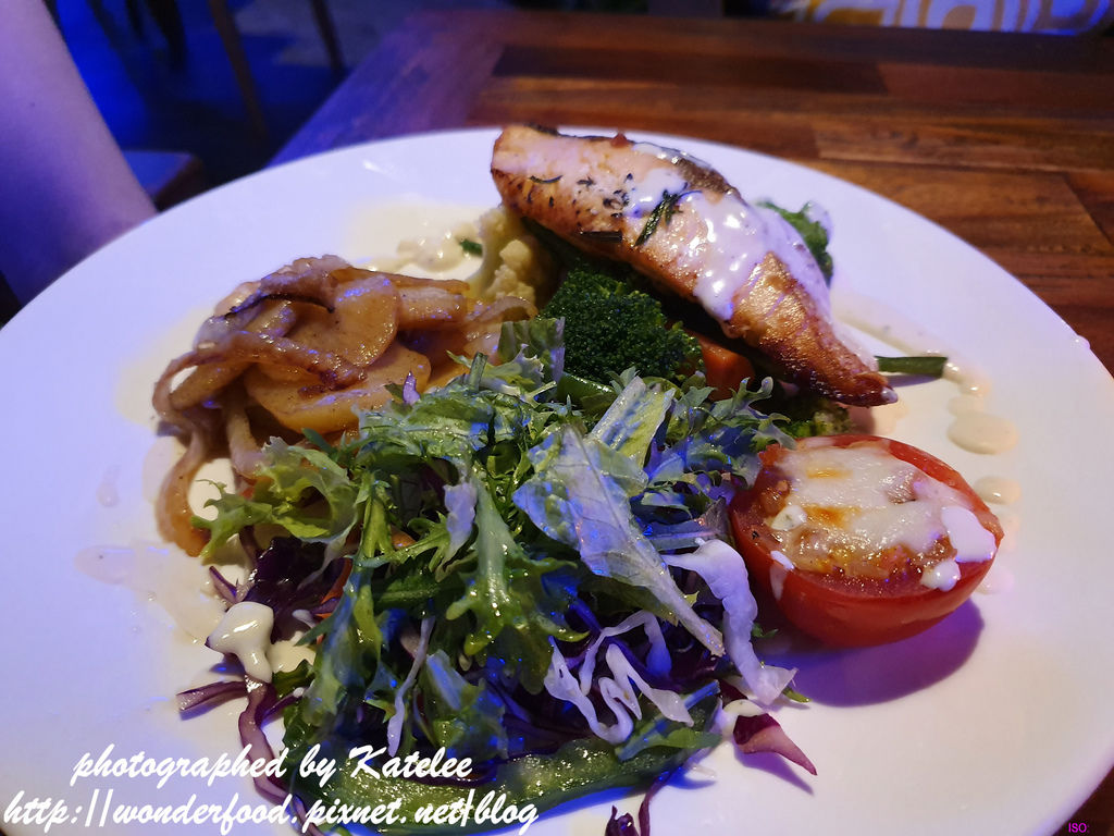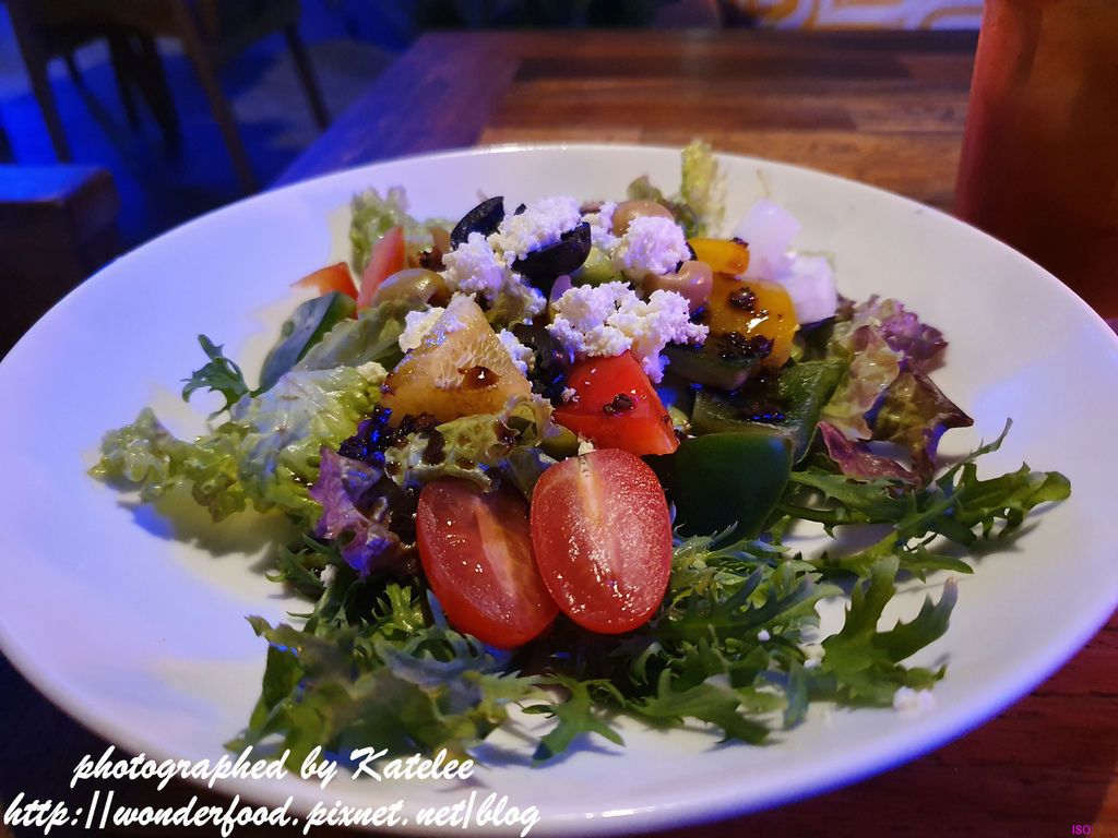 前菜是生菜沙拉,上面灑起司粉,吃完更餓了