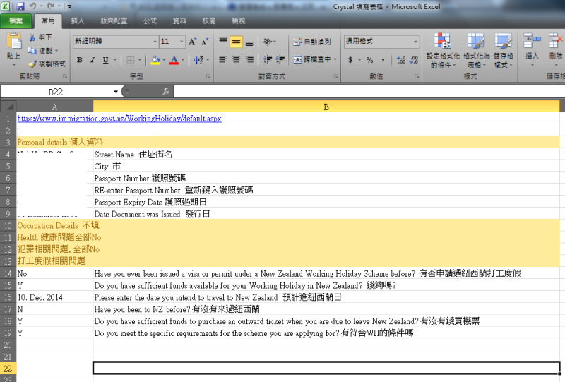 準備文件:網路上大多分享都是建議將表格填寫的內容先寫在word,但電腦環境許可之下會強烈建議使用EXCEL,因為word複製還要用滑鼠反選文字,但excel直接點到欄位後,用快捷鍵CTRL+C就可以了。若是選擇在網咖申請,要注意是否可正常開啟並使用。