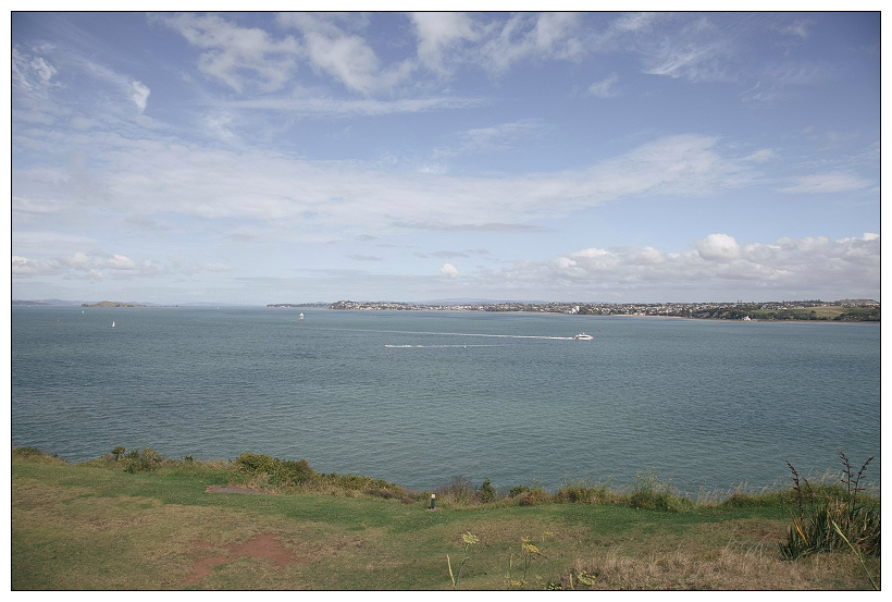 在北頭上看風景與Mt.Eden的感受完全不同。邊享受奧克蘭市區以及天空塔的景色時,你可以完全地享受海風吹到臉上的輕撫感,而且也可以遠眺Motutapu island。德文港還有另外一處更高的Mt. Victoria,但因為時間太晚而且兩人腳程力也已經用得差不多就沒有再過去走走,因為晚上還有非常經典的奧克蘭聖誕裝置要參觀。