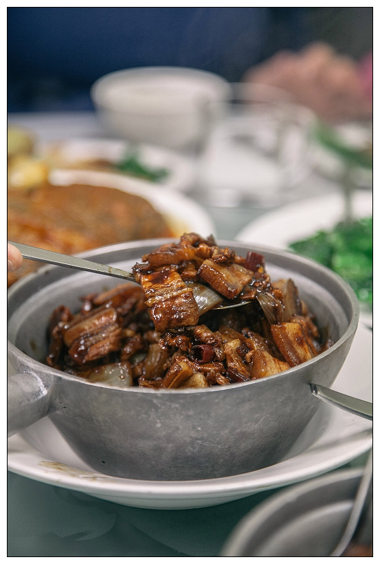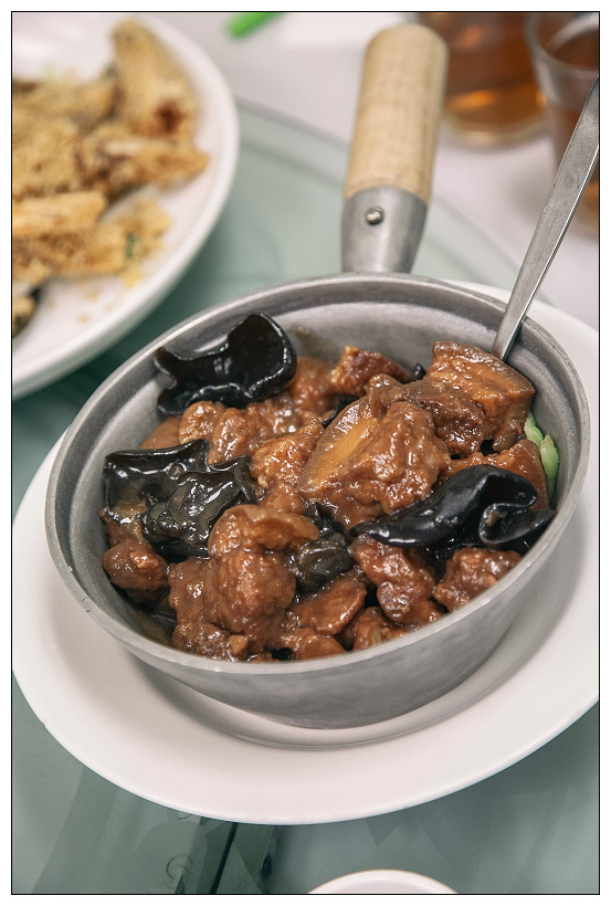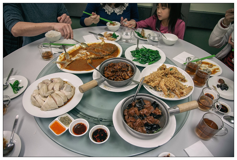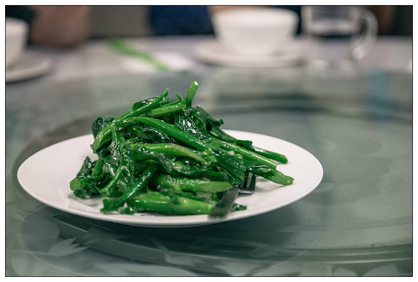 鹹魚花腩煲與客家豬肉對台灣人來說就很像高級的熱炒菜,也是兩道非常好下飯的菜,但可惜鹹魚花腩煲的鹹魚味道比較不夠,也吃不到鹹魚。蒜蓉時菜是點給小朋友吃的蔬菜料哩,但吃了這麼多肉,反而蔬菜也很搶手。海南雞是後來加點但確是超雷菜,連朋友都覺得雞肉有一股味道,栗還是喜歡吃台灣的白斬雞。