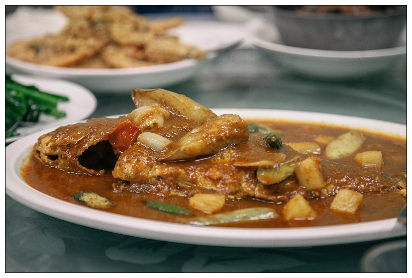 時價亞參魚則是吃起來味道酸甜很好下飯,栗總覺得馬來西亞料理很常整桌菜看起來都同一個顏色-紅通通。但其實每個醬料都有不同的味道,據說亞參Assam(不是阿薩姆)是用魚以及數種香料熬煮出來的。