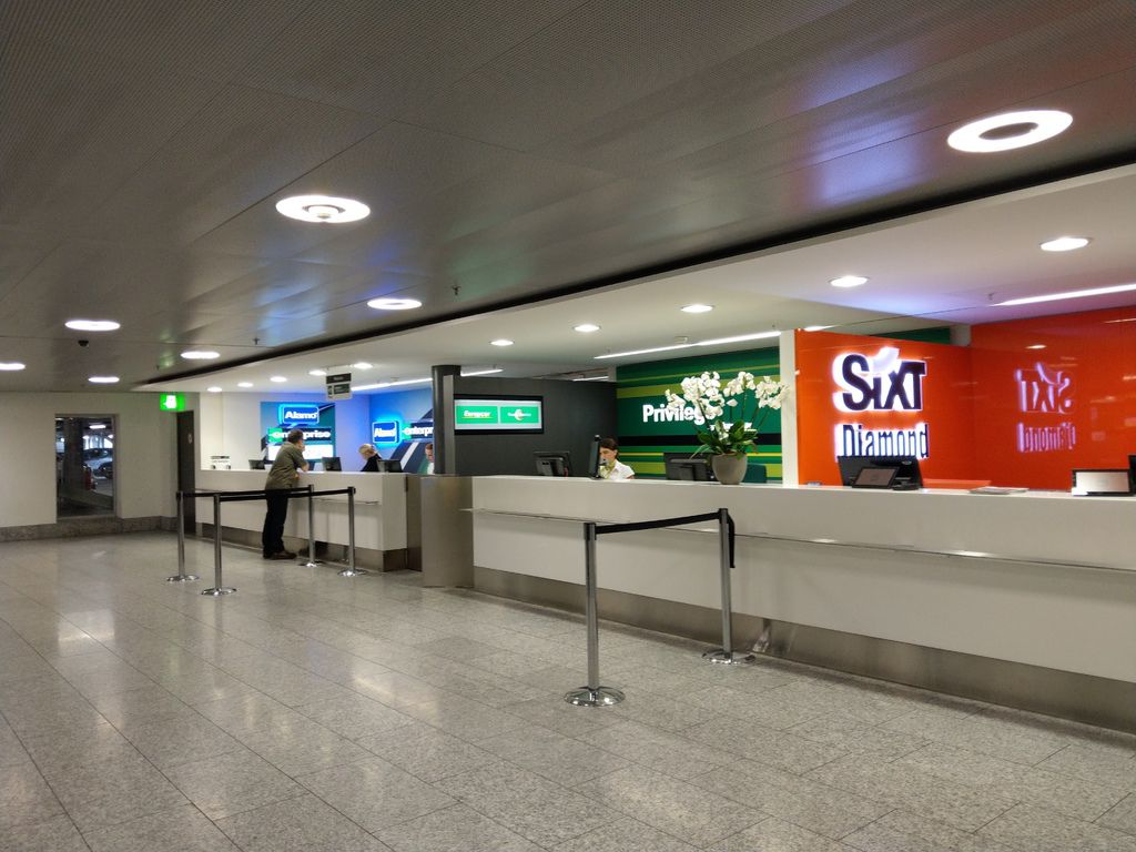 ▲蘇黎世機場的租車公司統一在機場一樓,跟著"Mietwagen/Rental Car”準沒錯。