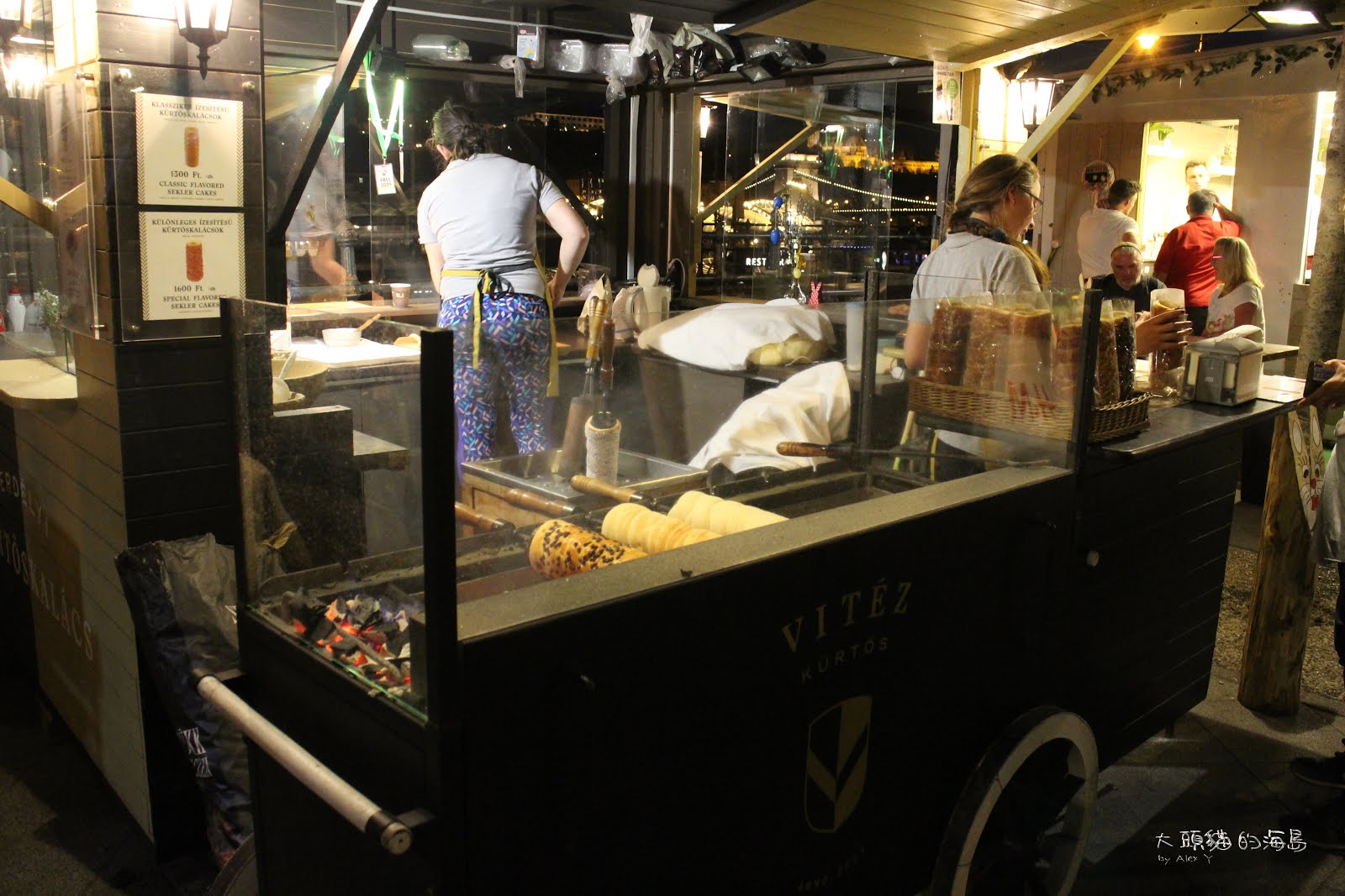 這種筒狀的甜食, 叫做煙囪蛋糕(KÜRTŐSKALÁCS), 我在捷克也有吃過. 在捷克叫做Trdo, 有些小販會叫它Trdelník, 但這個名字其實是斯洛伐克用的. 它是用一圈一圈麵團裹在長棍上, 加上糖, 肉桂粉跟杏仁粉, 放在炭火上烤而做出來的, 還可以加上一些花俏的變化, 例如多加巧克力醬, 或在裡面放上奶油或冰淇淋. 我在捷克跟匈牙利時每當聞到濃濃的肉桂味就知道附近有販賣煙囪蛋糕的小店或小販😄