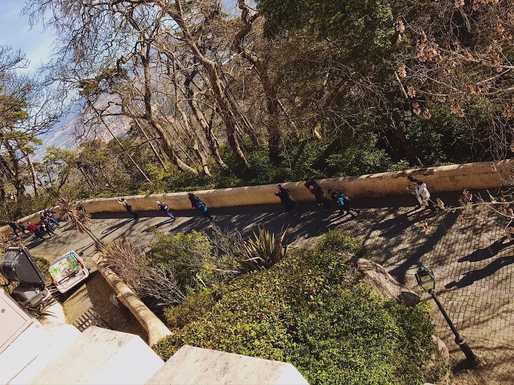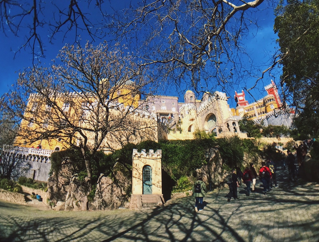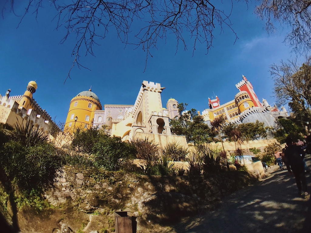 走著走著隱約從枯枝間瞧見傳說中的佩納宮啦,遠遠看真的好像來到什麼遊樂園一樣超酷的!!
