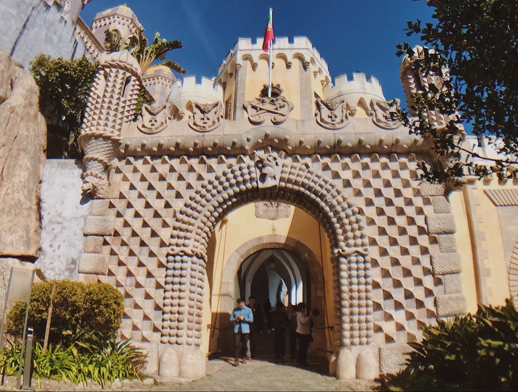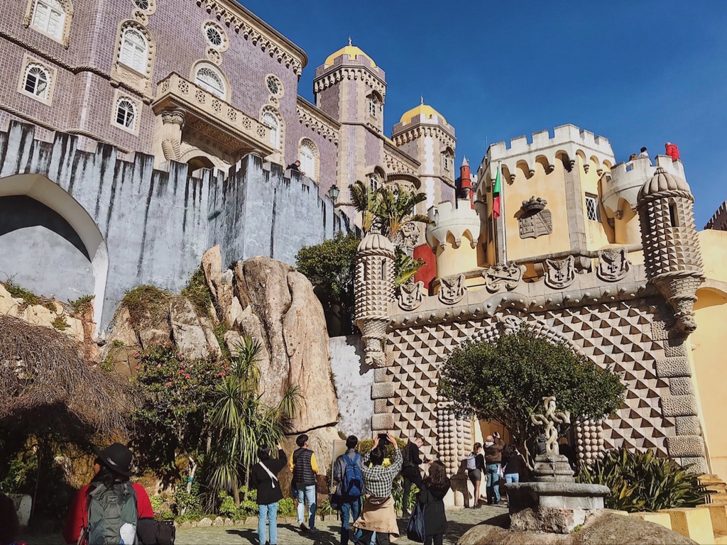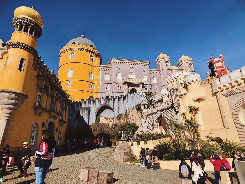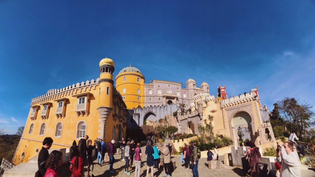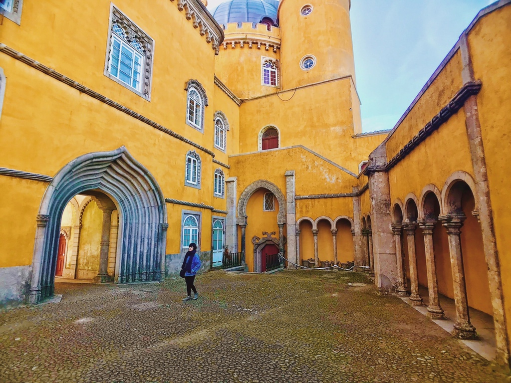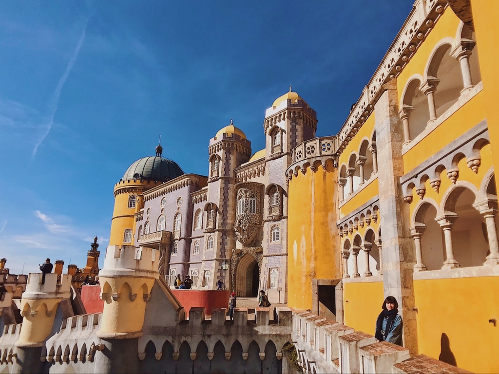 來到佩納宮的這天天氣超棒,蔚藍的天空襯著色彩豔麗的宮牆,卻意外的和諧順眼,