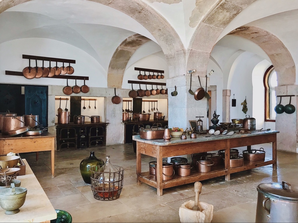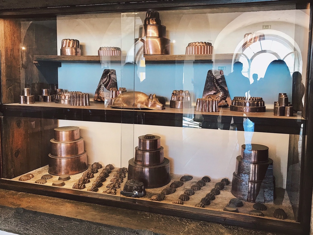 最後是雄鹿室旁的皇家廚房,裏頭有著滿滿的黃銅廚具,沒想到仔細看製作甜點的模具,