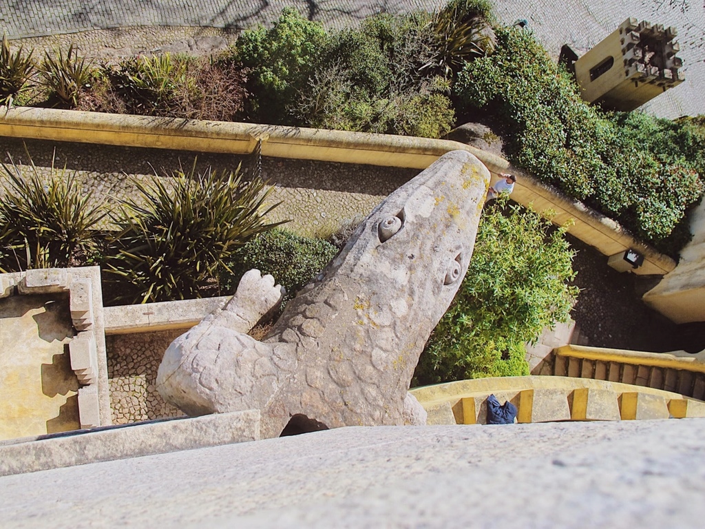 於是走在佩納宮開始留意各處建築細節成了另類樂趣,沒想到遠遠瞧見的鱷魚裝飾,由上往下看還挺大隻的,