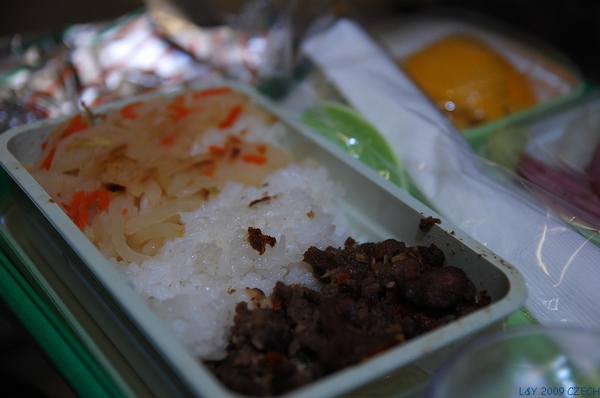 這是第一段航程的第一餐"雞肉麵" 及 "牛肉飯"