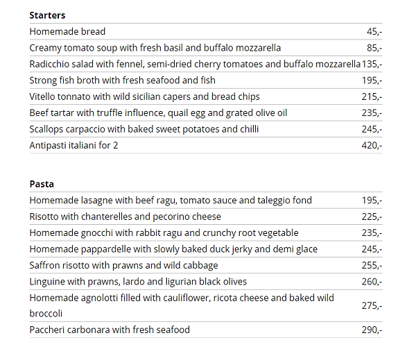 菜單:http://www.pagana.cz/en/new-winter-menu/