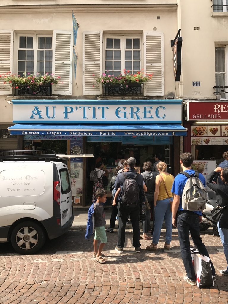 在這條路上的途中,看到一群人在排隊的一家店家,Au P'tit Grec.