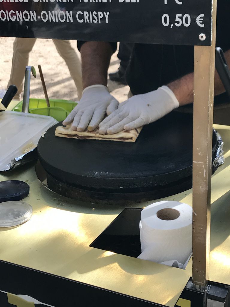 在香榭里舍大道附近的路邊,有不少推車都有在賣可麗餅.