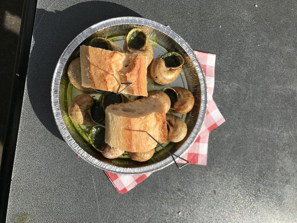 剛好這個廣場有擺一個小市集,又很剛好的有買有機蝸牛料理.