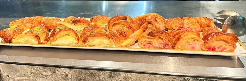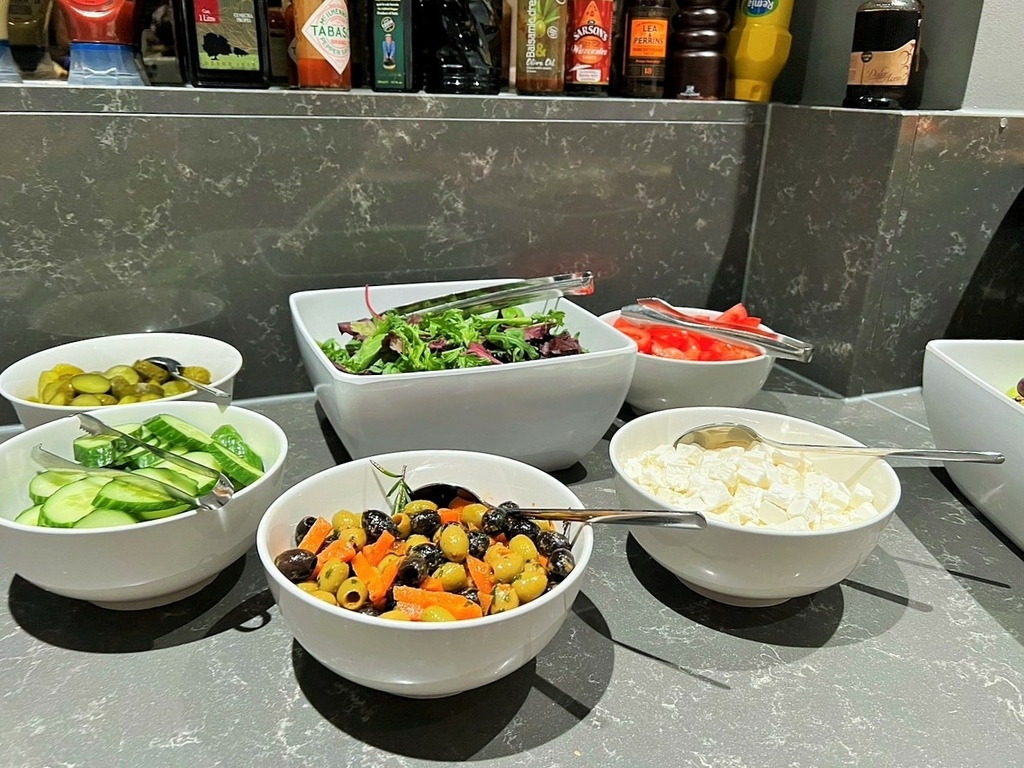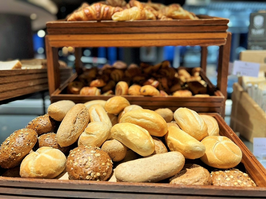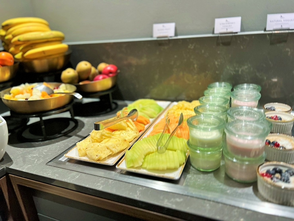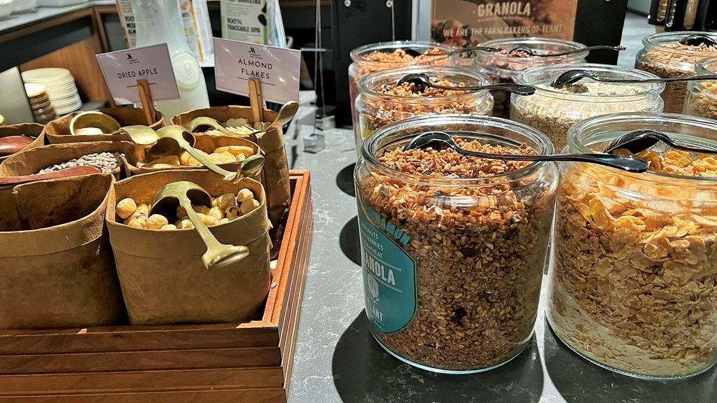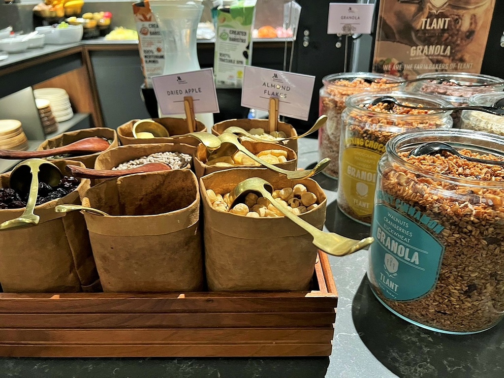 早安,鹿特丹,今天天氣晴朗,先到酒店餐廳早餐,麵包種類很多,生菜、番茄及醃橄欖,優格及水果,當然堅果、穀類也不少。