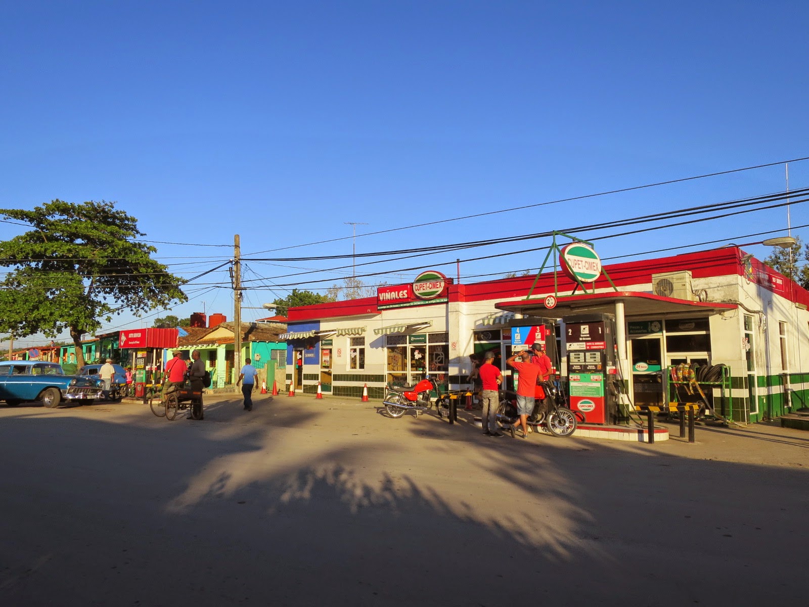 一上車, 我便嗅到一陣極極極刺鼻的氣味~ 怎麼? 古巴流行如此刺鼻的香水? 坐在氣味極濃的車裏並不好受, 車子開到巿區, 司機說要到油站入油, 我也下車看看古巴油站, 噢, 在這油站我才明白, 原來那刺鼻的氣味不是香水, 而是汽油味!!!