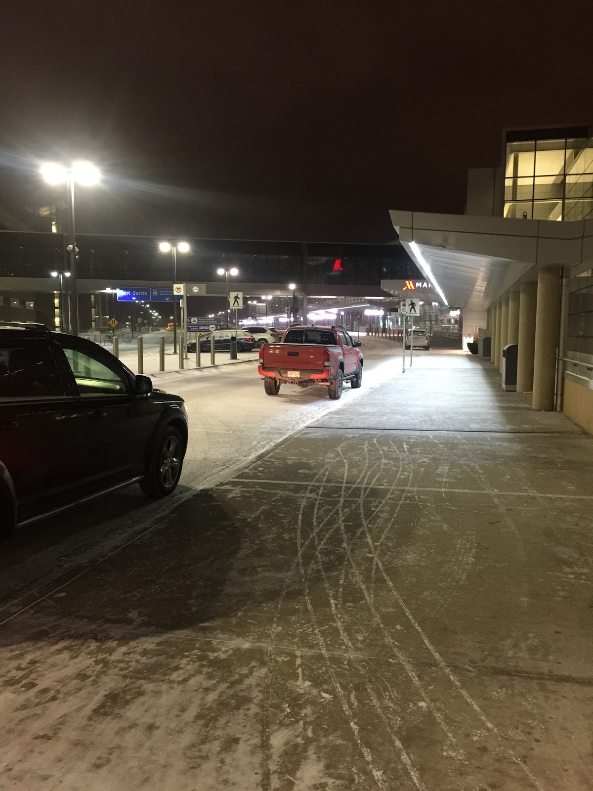 今天早餐水果仍是前天中午在班夫超市買的葡萄,一包2.99一直吃到今天真是划算。早上退房去卡加利機場,準備搭飛機去黃刀鎮,小主人已經上學去了,我們自己鎖門。離開前小狗Summer 似乎有感我們要走了,一直嗚咽,我今天還是叫uber送我去機場,雖然民宿到機場搭巴士含換車只要一小時,但畢竟要提行李換兩班公車,而且冰天雪地超冷的,這樣叫uber還是比較省事,而且只要20分鐘不到。卡加利機場雖然不大,一切用機器自助:自己劃位報到、自己貼行李條、自己送行李安檢。機場裡面服務人員一身牛仔打扮也很特殊,登機門較遠的也有車可以搭。晃著晃著就到我的B31登機門,哇!天啊!好小的飛機!還螺旋槳的!遙遠以前去澎湖玩、珠海飛成都後,好像就沒再搭過這麼迷你的!我們的位置是zone4,是最後3個登機,一上機overhead bin竟然被其他人給放滿了,真差勁!國內班機餐點要💰,而且看起來不好吃,就忍著點吧。飛機上不像國際線有電影或遊戲,整段無聊的航程。