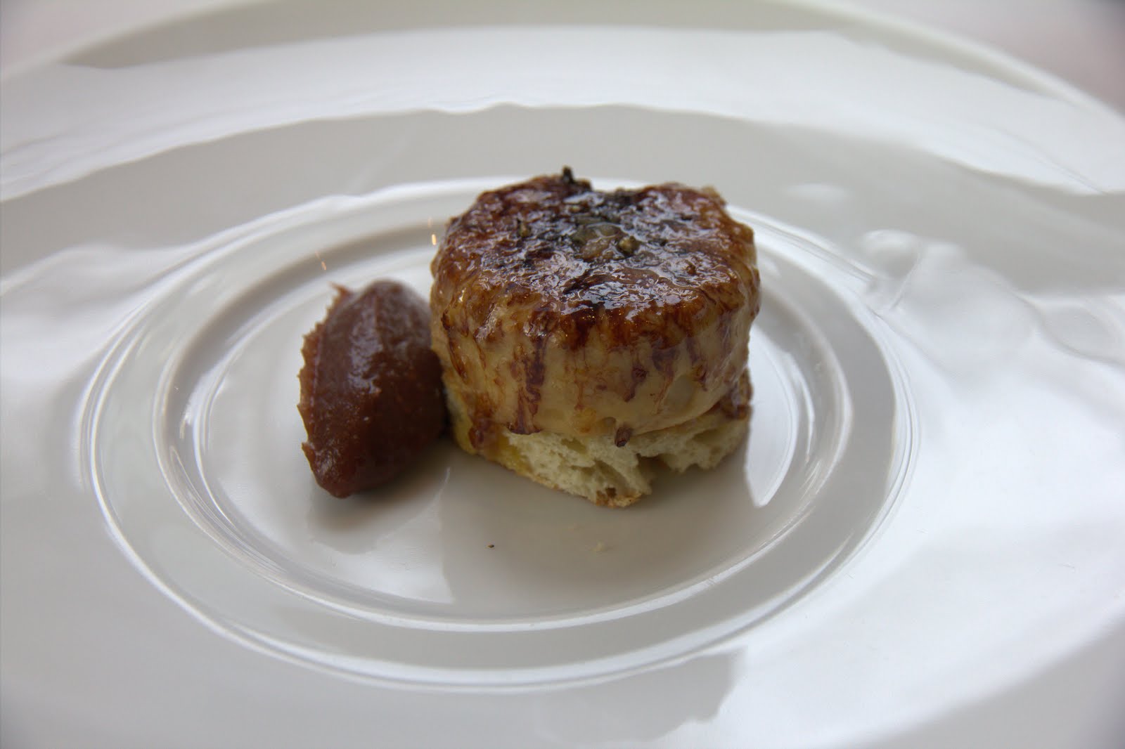 沒有存心誤導網友,不過文中的照片都是攝於2010年年末。除了兩個套餐以外,我們來另點了紅、白酒各一杯,搭配主餐的魚和牛。因為喜歡鮮嫩的口感,牛排我向來都點medium rare(四分熟),當天也不例外。固然牛排的生、熟度各家餐廳或有不同,但當天第一次送上桌的牛排無論如何都很難說是四分熟。畢竟是米其林三星的餐廳,和服務員反映過後,就是重新料理的牛排上桌。果然好的牛排還是要四分熟好吃呀!
