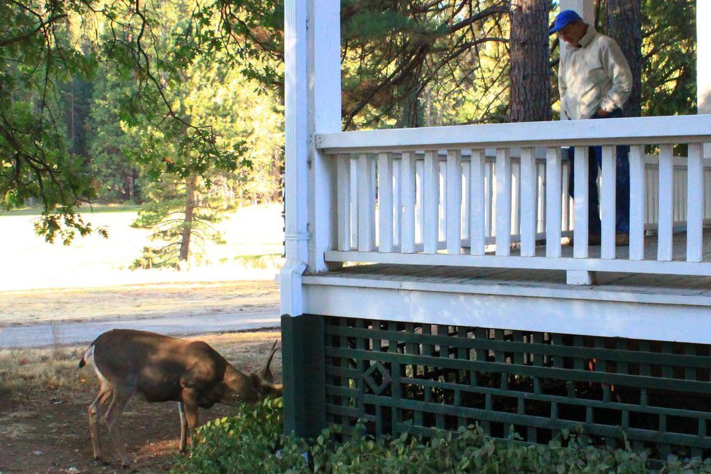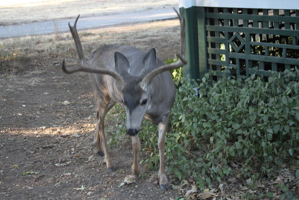 住在國家公園裡面,有很多親近大自然的機會,每天早上都可以聽到小鳥的歌聲,看到小兔子在草地上跳躍的身影,但我從來沒想過還可以”如此”的親近。 這是每天早上的迎賓鹿,每天早晨都在Annex遊蕩,而且他完全不怕人。
