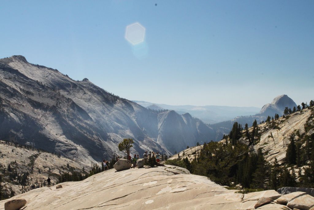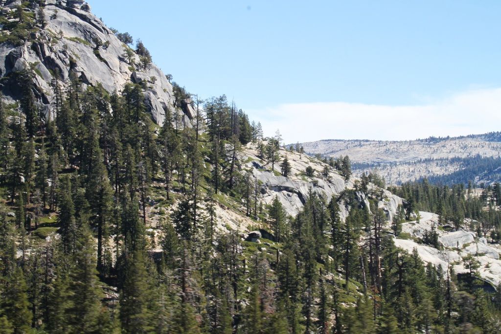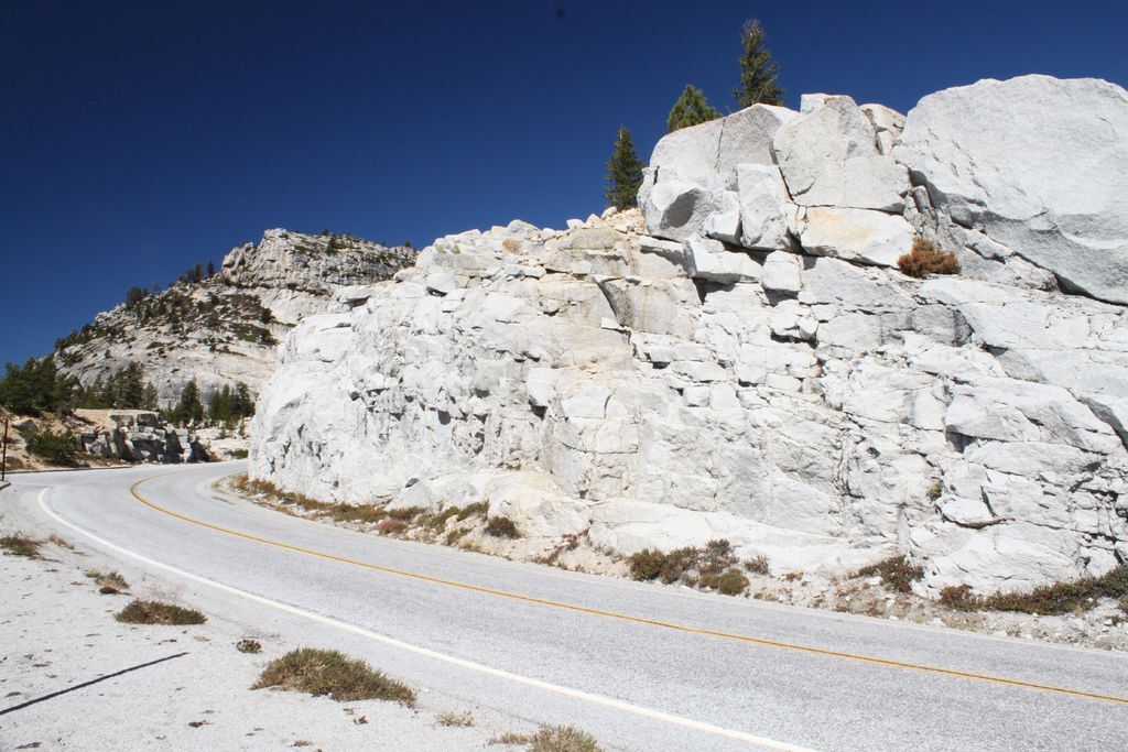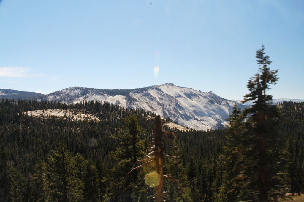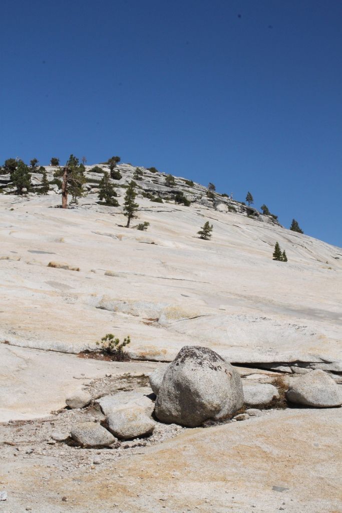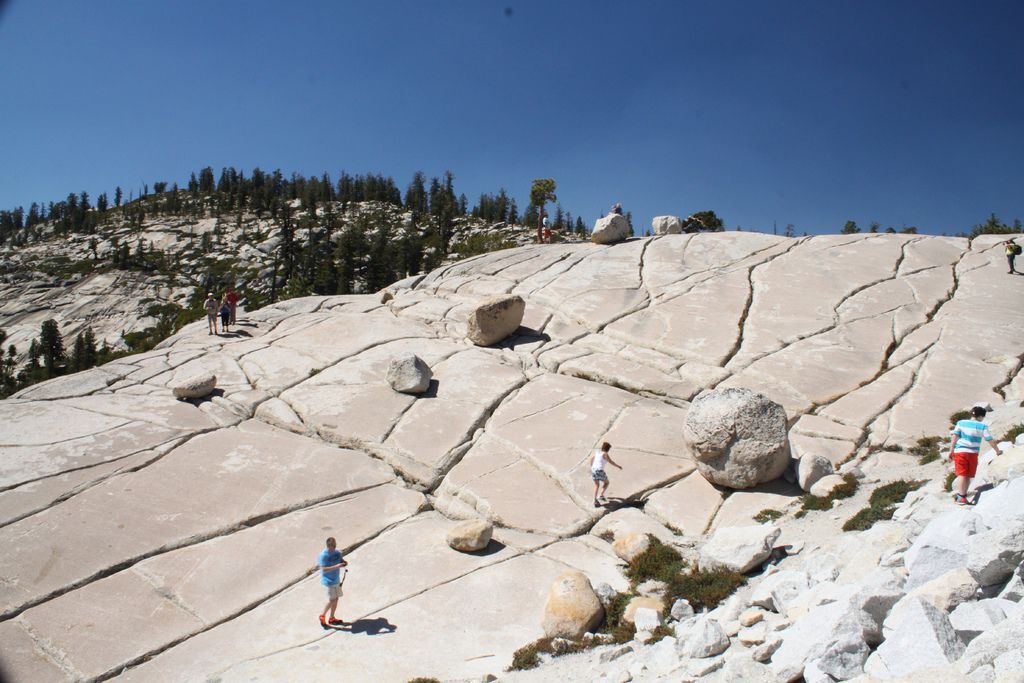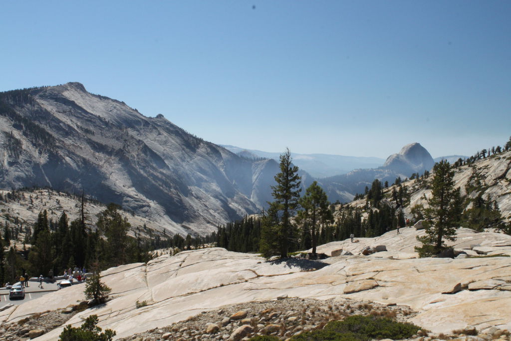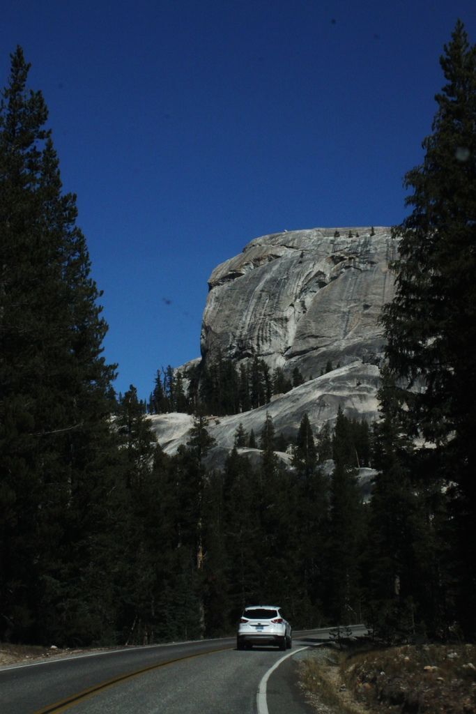 一查到OLMSTED POINT馬上讓他榮登我的MUST-GO LIST,因為被花崗岩上的格紋深深吸引!! TIOGA RD開到一半就進入都是花崗岩的高原區了,可以看到這些花崗岩有多大多完整,不太有植被的立足之地,裸露出潔白的岩身,遠看還以為蓋了一層雪。