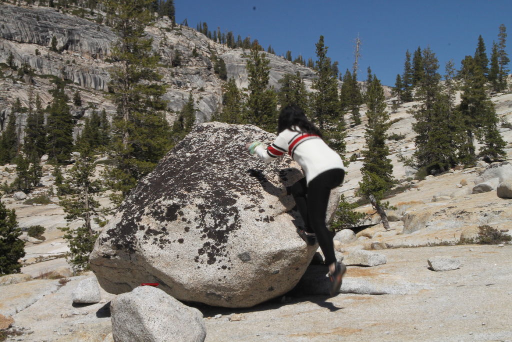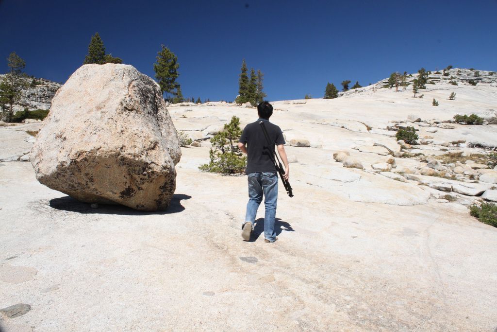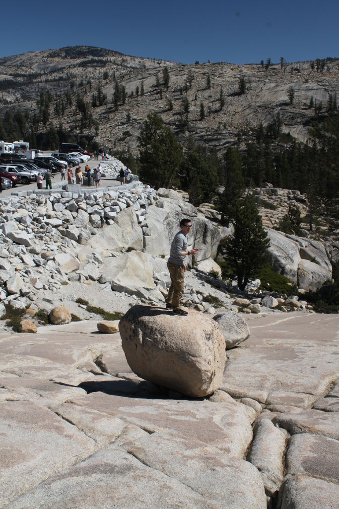 OLMSTED POINT以一位藝術家命名,地理位置剛可以瞭望TENAYA峽谷。 車子就停在TIOGA RD兩邊,可以分成上坡和下坡兩區。 現在看到地面上那些圓圓的石頭,其實都快比一個人高。