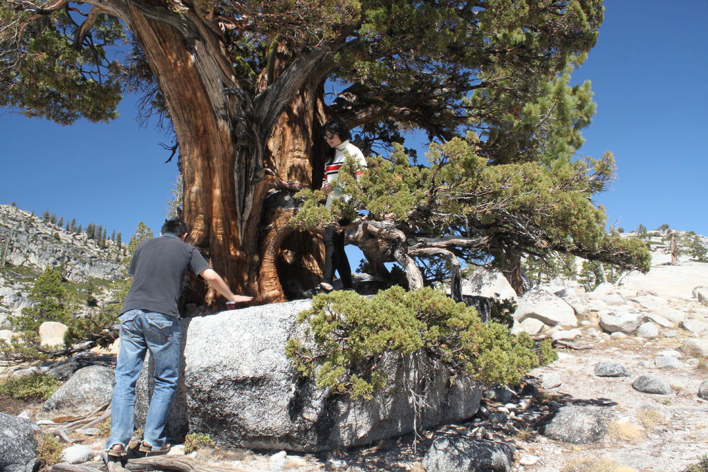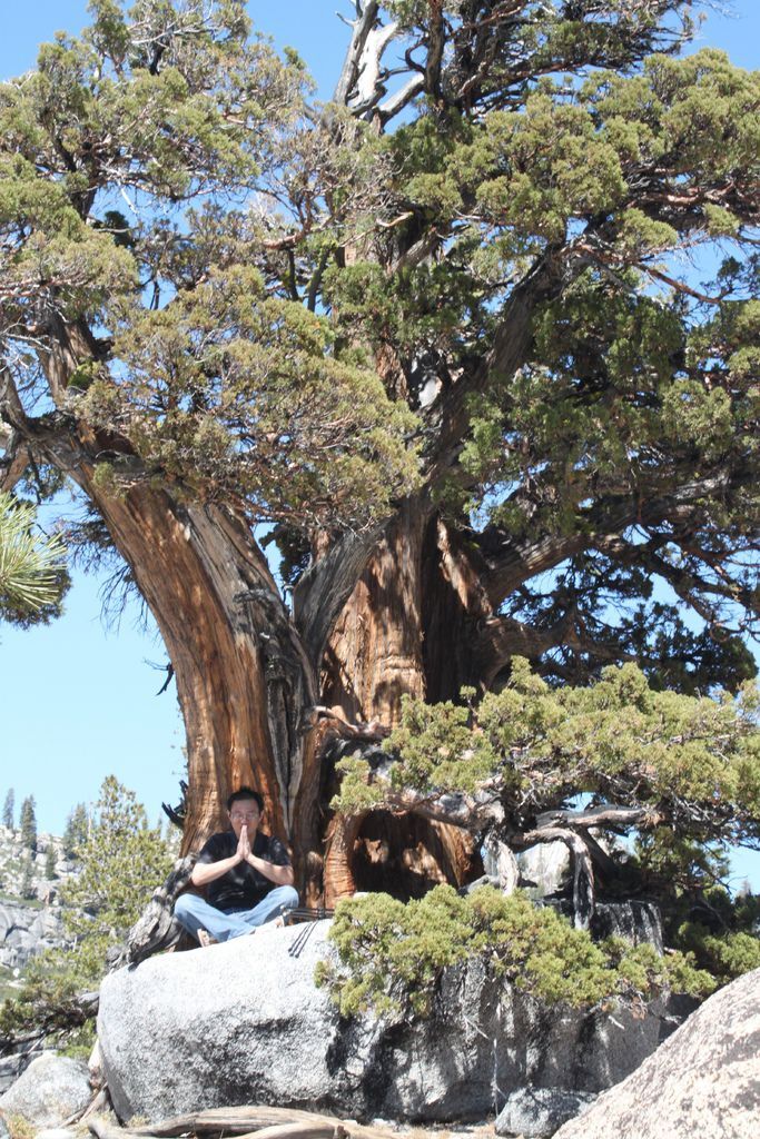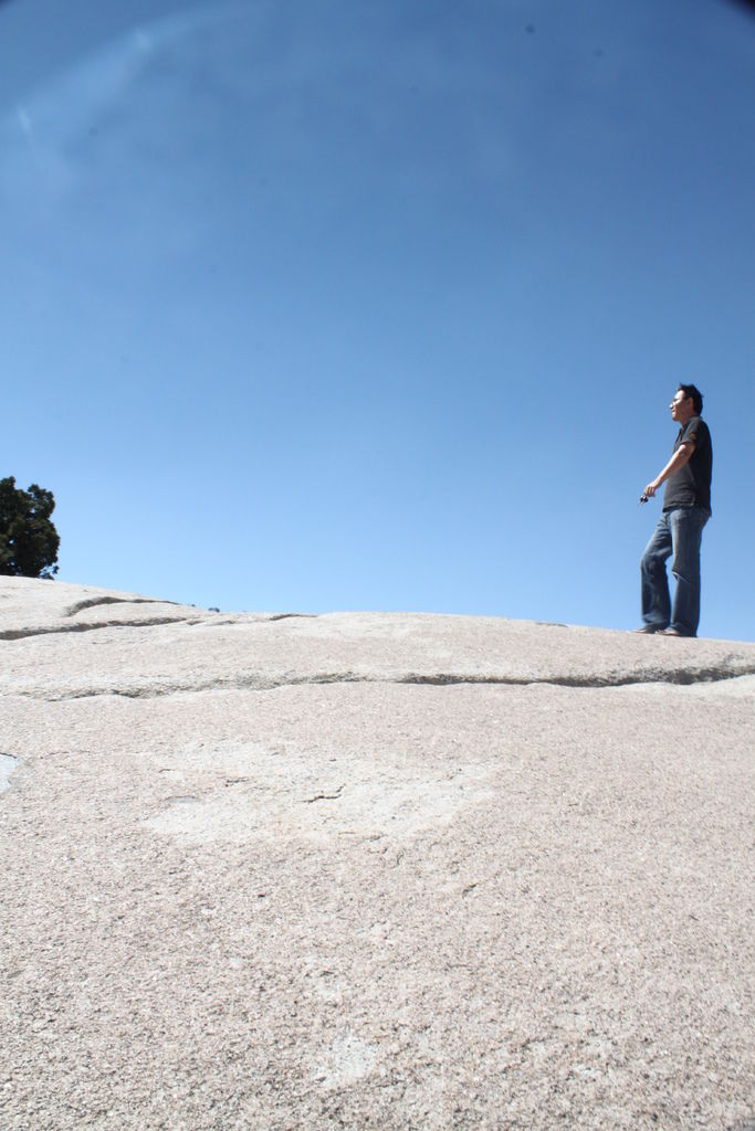 然後我又看上了一顆很有禪意的松樹,他正好巴著一塊表面平切的花崗岩,兩者合而為一後變成一座涼亭。 是說這裡的天氣跟雲南有點像,太陽很刺、曬到很痛,但風還是冷冷的;所以一定要注意防曬。