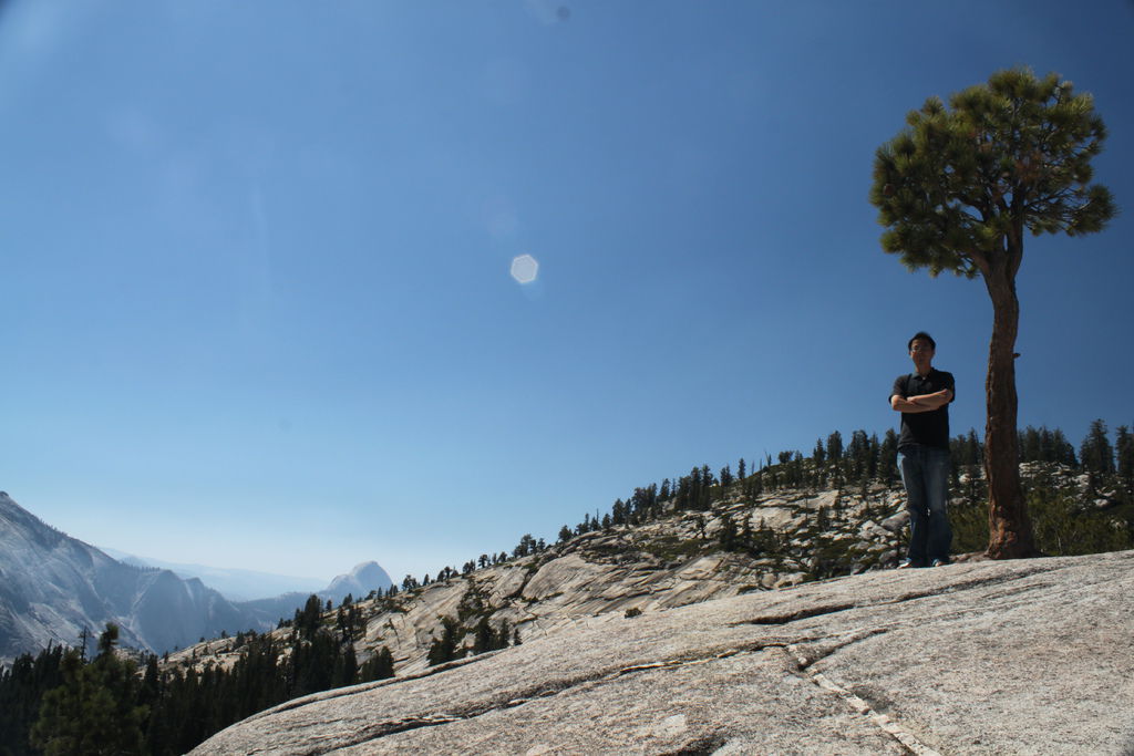 這裡也有一棵樹很熱門,因為展現了”在世界中心呼喊愛”的意境,成了遊客眼中的大紅人,爭相照像呢!! 妙的是大家都很有默契,知道拍照時就是要把周圍淨空,所以都退的遠遠的等待。 除了遠遠凝視,我已經找不出其他的表達方式,對HALF DOME訴說我對他的愛跟遺憾,噯。