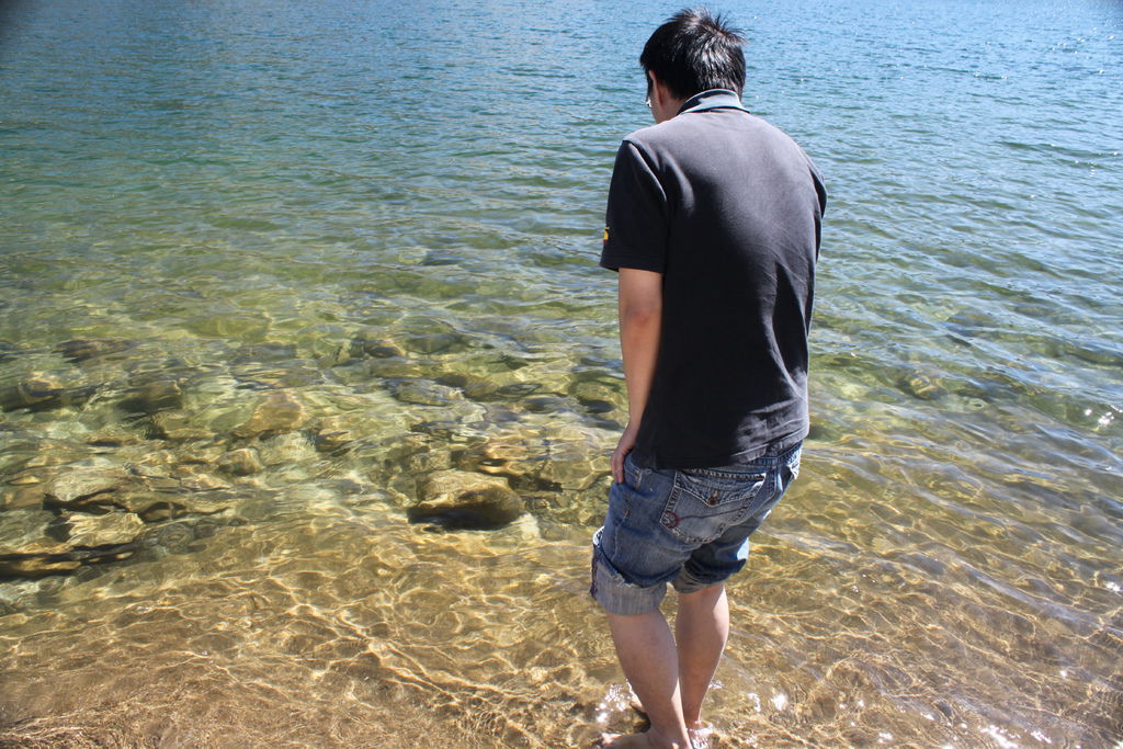 碰到的瞬間立馬龜縮,水超冰!! 根本是雪水 QQ 但這個緩坡儼然是做日光浴的最好場所,被太陽烤得溫度剛剛好。