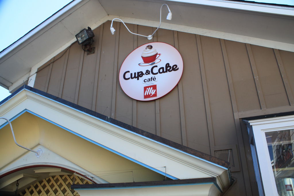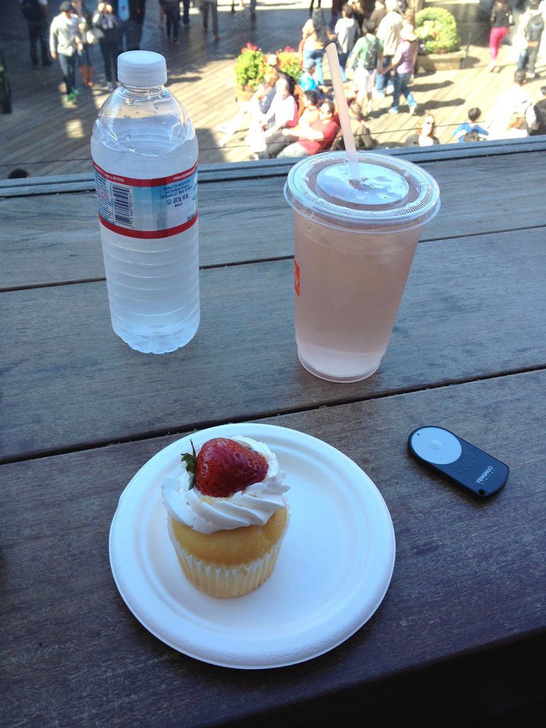 我查了幾間舊金山比較有名的杯子蛋糕,全部因為她們有華麗的奶油花、裝飾,但我在美國的杯子蛋糕體驗卻意外落腳在這邊pier 39的CUP & CAKE CAFÉ,大部分的原因是受到這個突出露天陽台的吸引,讓我可俯瞰pier 39。