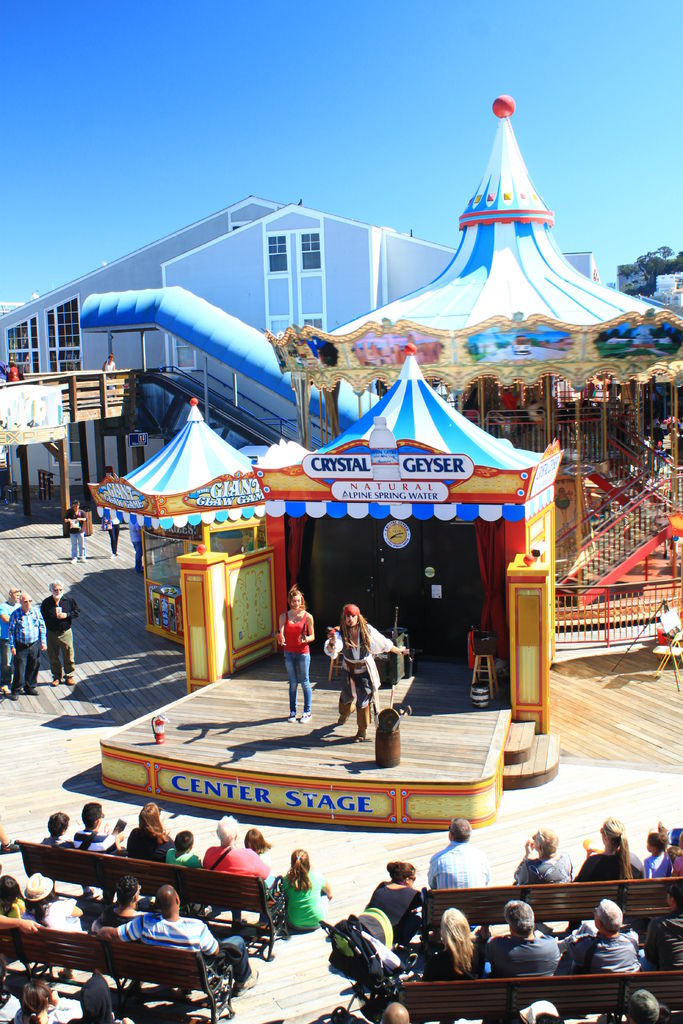 離開CUP & CAKE後我們走到pier 39接近尾端的地方尋找海獅,舞台上有位神鬼奇航打扮的魔術師。