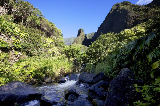 茂宜岛虽然面积不大,但是却为游客提供了丰富的旅游项目,留有充分的挑选余地。游览伊奥山谷州立公园(Iao Valley State Park),知名的卡美哈美大帝战场—针尖山古战场就在此地,因为山形如针尖所以被人们称为针尖山。早期为夏威夷人之朝圣地,经源源不断的山泉水为险峻断崖所环绕而成的溪谷景色,如今比美桂林,另人叹为观止。