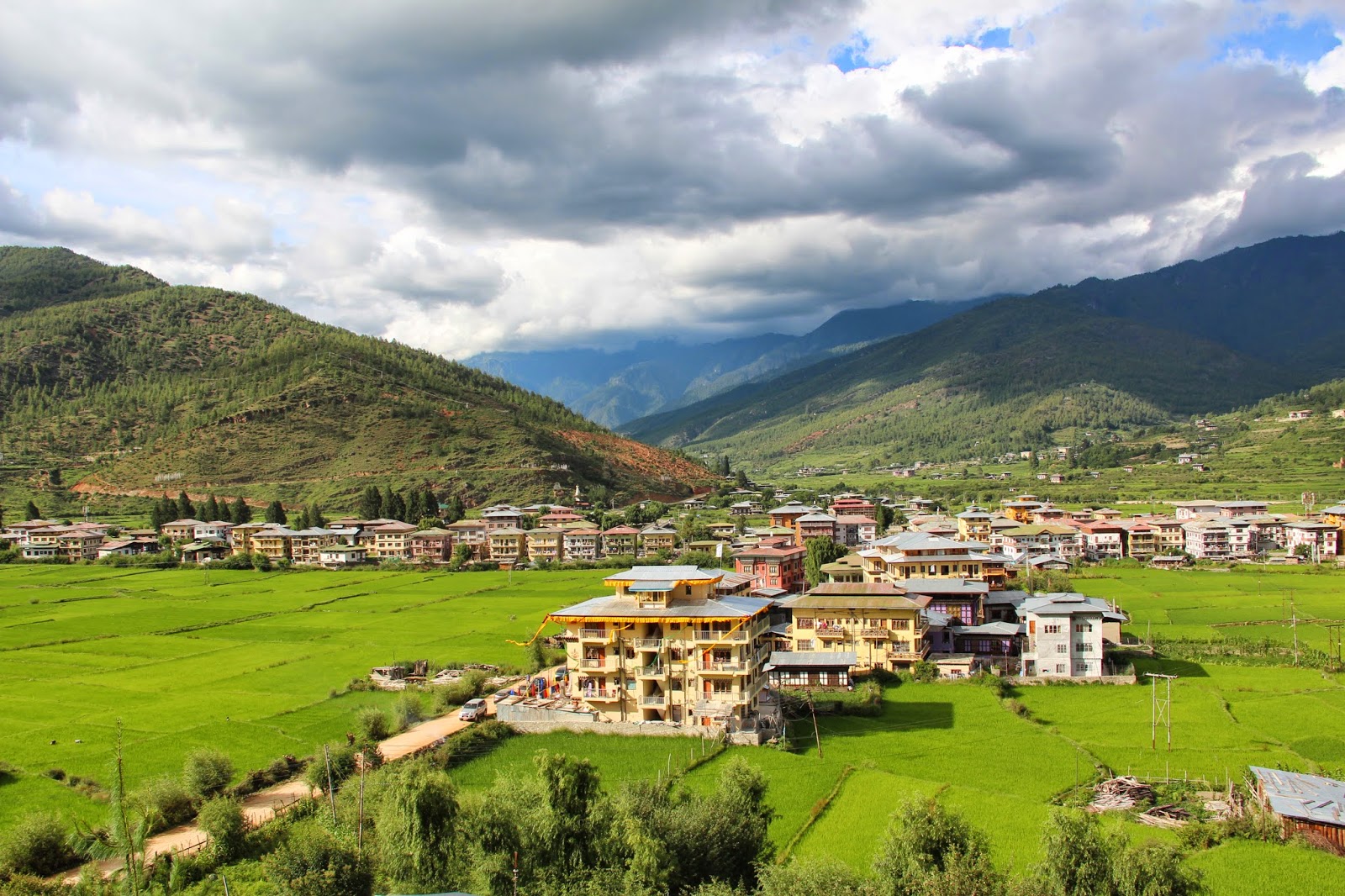 從高空看到不丹式的小農舍, 一格格的梯田, 然後見到聚居的小村, 很快越飛越低, 然後我們來到不丹機場.