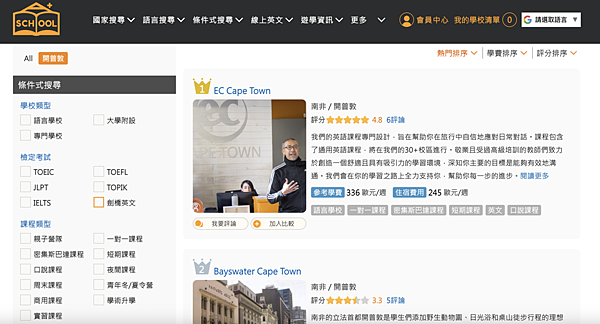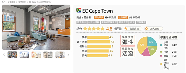 南非評價好又符合課外活動超多的,最後選擇開普敦的學校 「EC English」