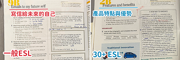 -左邊:生活化,內容輕鬆,討論個人目標與未來計畫,適合年輕學生。