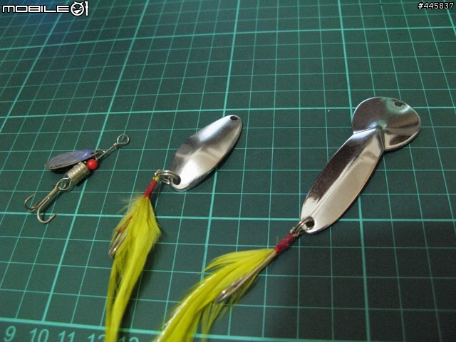 神戶齊 wrote:魚的話...目前還沒玩過路亞 路亞啊?很久之前去阿公店水庫釣雷魚(鮕呆)有玩過一陣子我是玩這種叫做"湯匙"的路亞這種比較簡單比較不需要抖竿子,甩出去後收線拉回就會在水中跳動翻滾,最小那支(左)則是拖的時候前面鐵片會旋轉。這種路亞最主要是激怒魚去追它攻擊它~