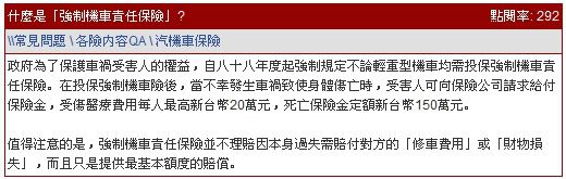 在台灣如果沒有另外保『車體險』,車子壞了也只能自己修,不然就要找狗主人負責了!啥!沒狗主人?那就抓狗回去顧門抵債了!台灣機車一定要保『強制險』,這應該跟您們的『平安險』一樣,這種保險只針對『人』的部分,財物損失是不賠的!