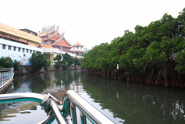 Day 6 台南->高雄台南是我大學待了四年的地方,但在畢業後,好像只回來過兩次,上一次回來也是2006的事了...仍然起個大早,雖然飯店有供應早餐,但不想吃,還是回來熟悉的地方吃早餐大學路上的麥當勞,過了十年,很感動的這間店還在...新口味的 滿福鮮蔬堡啥...麥當勞不是全省都一樣嗎?嗯...感覺不一樣...XD來到成大,光復校區的大門然後不知不覺的在成大待了一整個早上....打算把成大的遊記獨立出來一篇文章,就不寫在環島裡面...用榕園的照片做結吧...不過昨天才在想假日太多人,所以把孔廟的行程改成今天早上看來時間又拖太晚,還是避不開人潮..孔廟因為在成大待太久,所以在孔廟待的時間很短,差不多繞一圈就出去了大概只是讓我回憶一下孔廟長得什麼樣子而已...然後到周氏蝦捲去午餐星期天中午的人潮果然可怕啊...Orz光是排隊就排了快二十分鐘,但又不甘心來了吃不到,還是認命的排隊價目表咦...對焦對的地方好像不對吧...XD好吧,我懷疑周氏蝦捲的櫃檯店員是有挑過的,大概有讓排隊排的不耐煩的客人比較不會發脾氣的作用...XD終於..我的午餐:蝦捲+擔仔麵學生時代就很愛吃周氏蝦捲,當時還買過冷凍的回家自己用平底鍋煎,不過煎出來的就沒有在店面吃的好吃...十年沒再來過,品質並沒有因為出名了就變差,還是好吃不過就是要忍受比以前多很多人的缺點...吃完午餐後接著去安平,一來時間問題,一來看到又是人擠人的狀況,直接放棄安平古堡和億載金城...讓這兩個古蹟的回憶留到十年前吧...XD下一個目標:台江國家公園其實我旅遊前的功課做得不太足夠,只知道這邊可以搭竹筏外就什麼都不知道,手機導航定了個 國家公園管理處 就過來了,不過到了管理處後整個傻眼,怎麼這麼荒涼?附近一個人都沒有....硬著頭皮去問管理處裡正在吃午餐的管理員,才知道台江國家公園指的是一片區域而我要搭的竹筏在四草就在這裡,四草大眾廟,導航應該定這裡才對價目表有兩種可以選,台江觀光船全程約70分鐘,價格200元,綠隧竹筏全程約30分鐘,價格150元,我選的是綠隧竹筏...上船了我們搭的就是像對面一樣的船,現在在會船中...綠色隧道聽解說員說這裡有個特殊的名稱叫「天使之吻」因為樹枝和水裡的倒影看起來就像個嘴唇的形狀「綠色隧道」這個名稱很氾濫,台灣一堆地方都叫綠色隧道集集、古坑(昨天才去)、新屋、永安漁港、卑南、梅山、三義....etc.....不過四草的綠色隧道比較特別一點,它是水路就像照片,一條河旁邊種樹,而樹是往河的方向生長..而搭船就是竹筏走過去再原路走回來景色不錯,錢還算花的值得...下船後,走到隧道旁的小路拍生物彈塗魚,保護色很好,要仔細點看螃蟹然後晃到附近的抹香鯨博魚館很小一間,繞一圈大概只需要十分鐘...接著往 鹽田生態文化村不過這裡看起來沒什麼規劃,景色不特殊,也沒什麼人沒什麼可以逛的,拍張鹽田照片就算交待吧...XD原本還要去四草砲台的,但被導航騙了,告訴我已經到目的地,但怎麼看都不像四草砲台,懶得找就作罷...(結果後來才發現四草砲台就在大眾廟旁邊,但那是後來的事了...)看還有一點時間,於是繞回安平安平古堡、安平樹屋都在附近,我大學的時候去過古堡,但對樹屋卻沒什麼印象,算了,懶得去回想當時為什麼會只去古堡沒去樹屋的原因,今天還有時間就去樹屋晃晃吧...德記洋行門口安平樹屋,假日的人真是多啊...樹屋原來是德記洋行的倉庫,不過現在有點反客為主,它反而成為遊客參觀的重點而德記洋行目前內部擺了一些蠟像在展示,不過禁止拍照,所以就沒相片了...離開安平,往下一個目的地:黃金海岸有小孩在玩沙對黃金海岸也有點特殊感情,大學時心情不好的時候,常會一個人騎著車到這裡散心、發呆原本只想路過看看的,然後趕在天黑前到達高雄不過一到這裡突然就不太想離開...心一橫,反正台17 路又大又直晚上還有路燈,又不是騎山路,白天騎車和晚上騎車有什麼不同?於是一直等到天整個黑下來,才心不甘情不願的離開..接著就是趕路,直接到高雄車站附近的飯店 check in 之後,吃完晚餐,繼續到愛河之心愛河之心的特色就是這座陸橋,目標很大很好找,遠遠看到就知道到了...於是今天就在這美麗的夜景中劃下句點.....住宿小評:華宏飯店 950元(星期日晚上)住到第六晚,終於有讓我想貼照片的飯店,整間飯店還蠻有設計感的,而且價位也便宜,又在火車店旁邊硬要找缺點的話,就是我住的房間浴室小了點,沒有浴缸,不過我不介意這個就是,推薦!!花費住宿 :950食物飲水:345加油 :138門票停車:235(孔廟+台江綠隧竹筏+抹香鯨+樹屋)---合計:1668里程:94.3 km預告:Day 7 高雄->墾丁 (美麗島站、西子灣、旗津、墾丁大街)