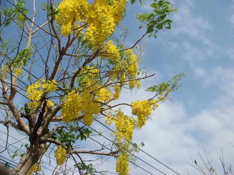 路邊不知名的花,鵝黃色的一大串一大串,盛開在南國的初夏