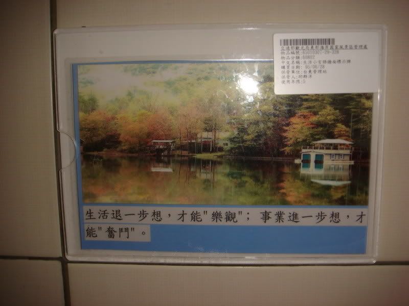 這裡的環境整理的乾淨又舒適,連廁所也都很有水準,這塊牌子也沒什麼不好,只是那張標籤太礙眼了,公家機關做事不能斯文一點嗎?