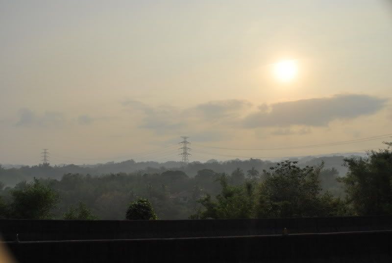 在182線道龍崎的路上,太陽已經升起了,遠方一片霧濛濛的