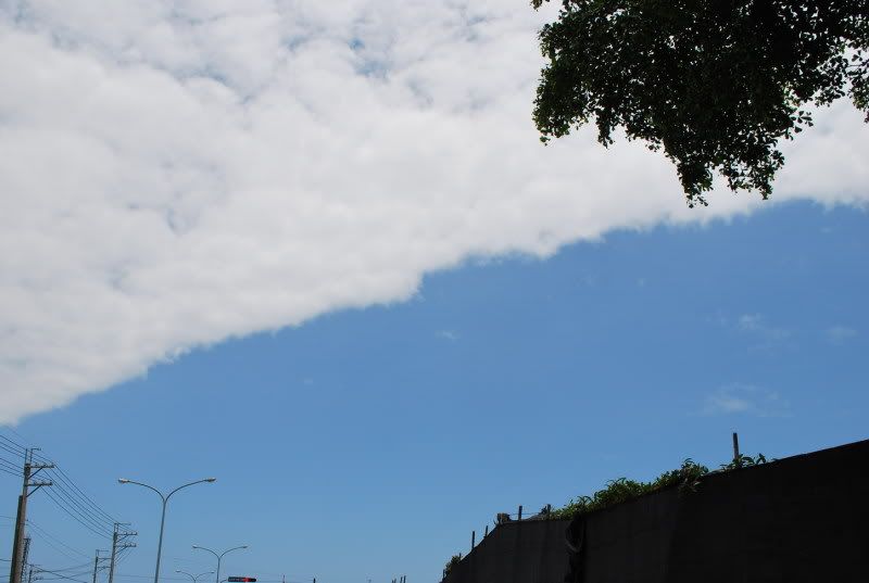 從這裡開始天空呈現兩極化,一邊都是厚厚的雲層,一邊則是萬里無雲