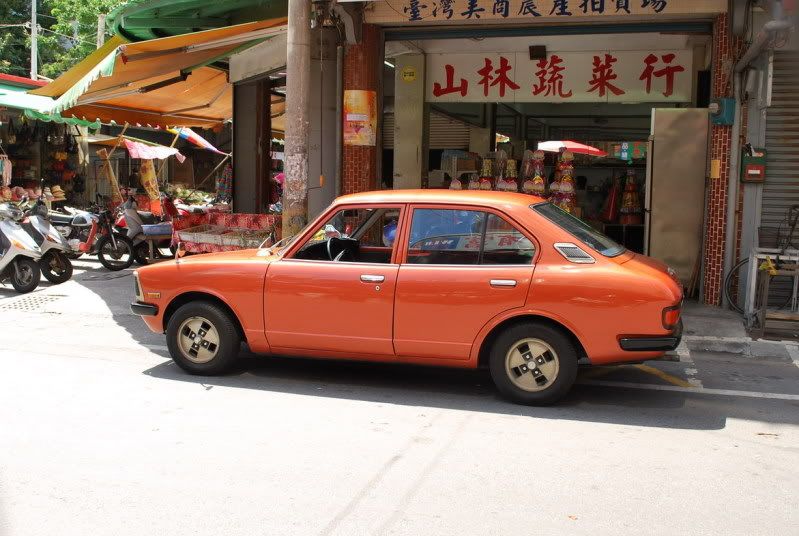 路邊看到的老車,整理的很漂亮,這是TOYOTA 的COROLLA,我的國中同學家裡以前也有一台