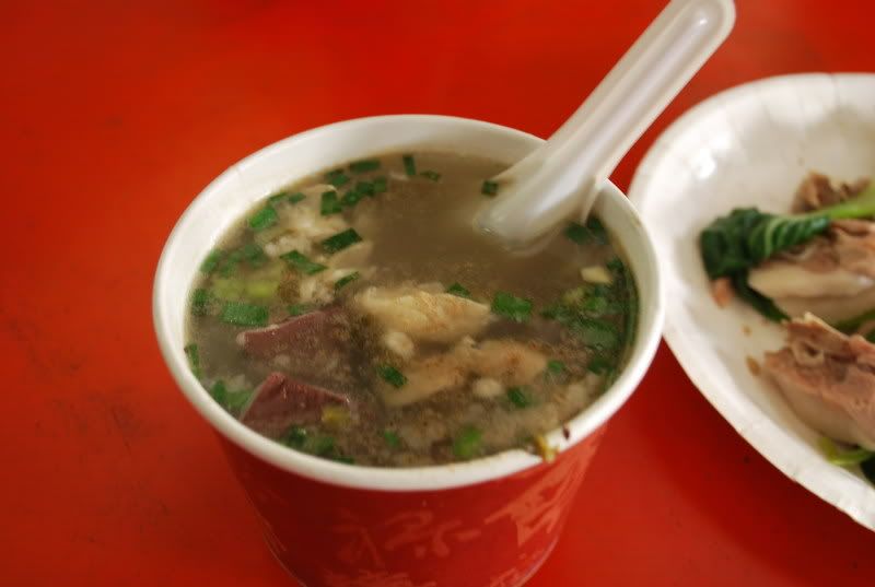招牌豬血湯,一碗40元,份量比來一客大一點,豬血夠大塊份量也不少,但是美中不足的是豬腸和酸菜韭菜都很少,或許他的賣點就是豬血吧!