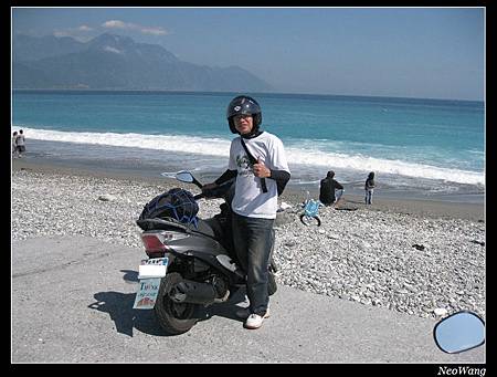 在這裡麻煩一位印度的大學生幫我拍照!他從台北坐車來花蓮,然後租摩托車來七星潭,重點是他不穿鞋子,哈哈!