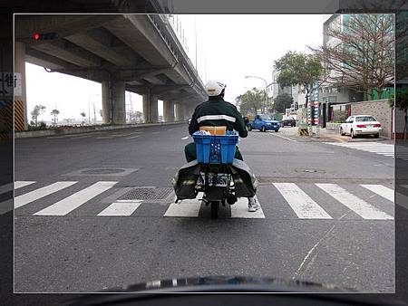 陪我騎了一段路的郵差阿伯~騎車很猛~每個紅燈都壓斑馬線