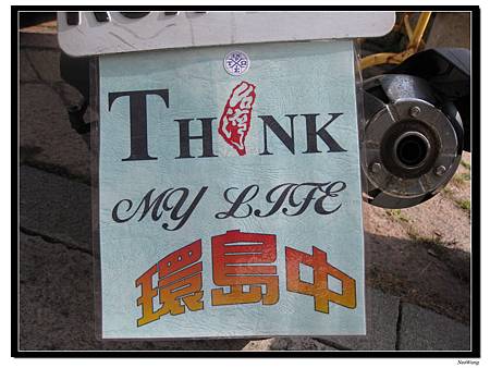 從鹿港開始,我也把本次環島的精神LOGO貼在擋泥板上,目的是提醒自己不能放棄,也告訴別人,以免在趕路時,騎太快被人譙。