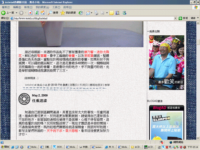 人在大陸的Zero2也來支持下嚕!但我看不到五月二十四日晚上八點,在衛視中文台首播的節目也!(衛星收不到也)真傷腦筋!但不管這樣~請這節目一定要加油嚕!Zero2 X Fun 逗Fun 逗:http://blog.sina.com.cn/james1215