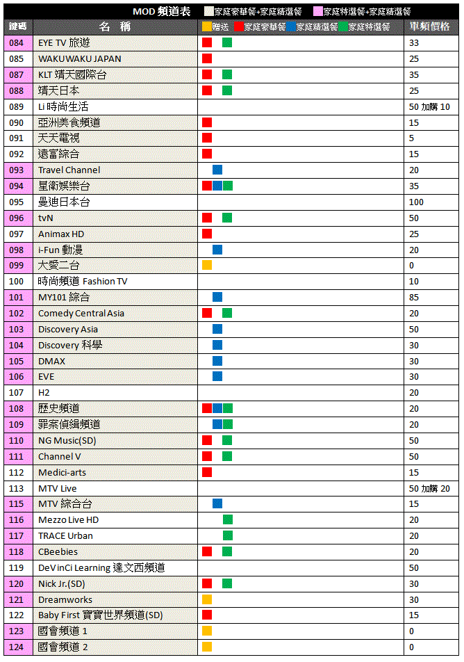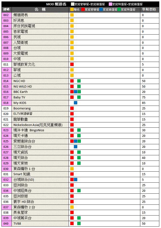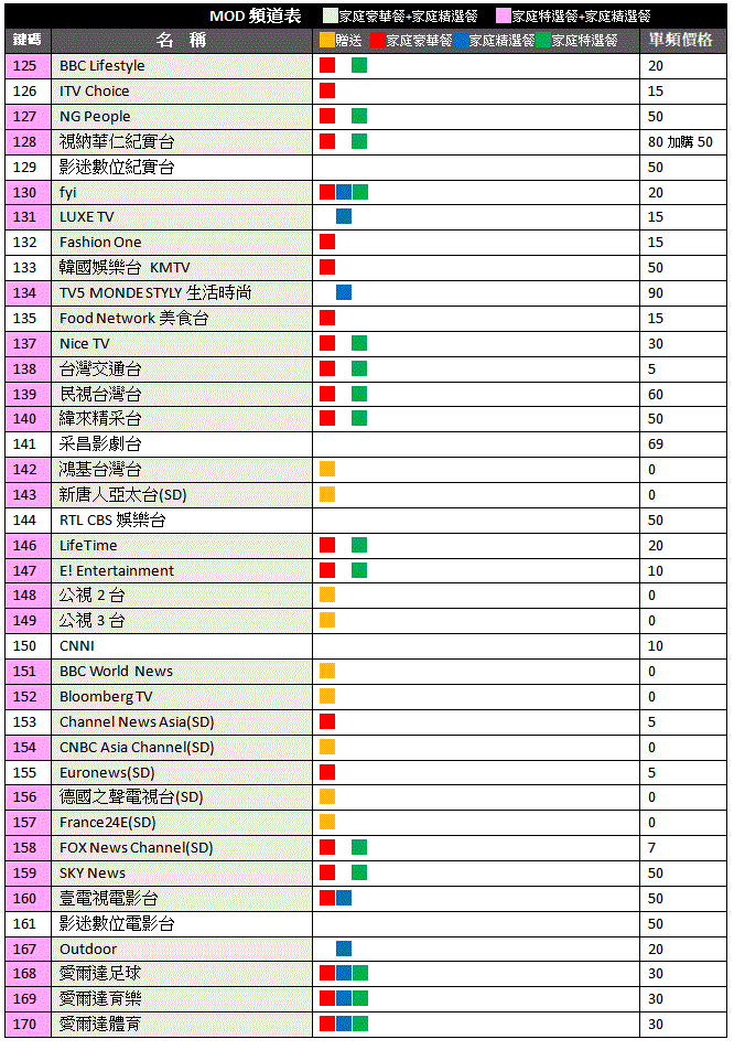 jeremylai wrote:特選餐沒有56台刪台時明明有特選餐不是只減掉台互的頻道嗎 不大算是目前正式成為特選餐之後還是有一點調整所以除了少了台互頻道也新增異動了其他頻道目前 MOD 官網內「特色套餐推薦」有提供頻道比較表可以查看整個差異算是比較能夠看清楚套餐比較差別的整理