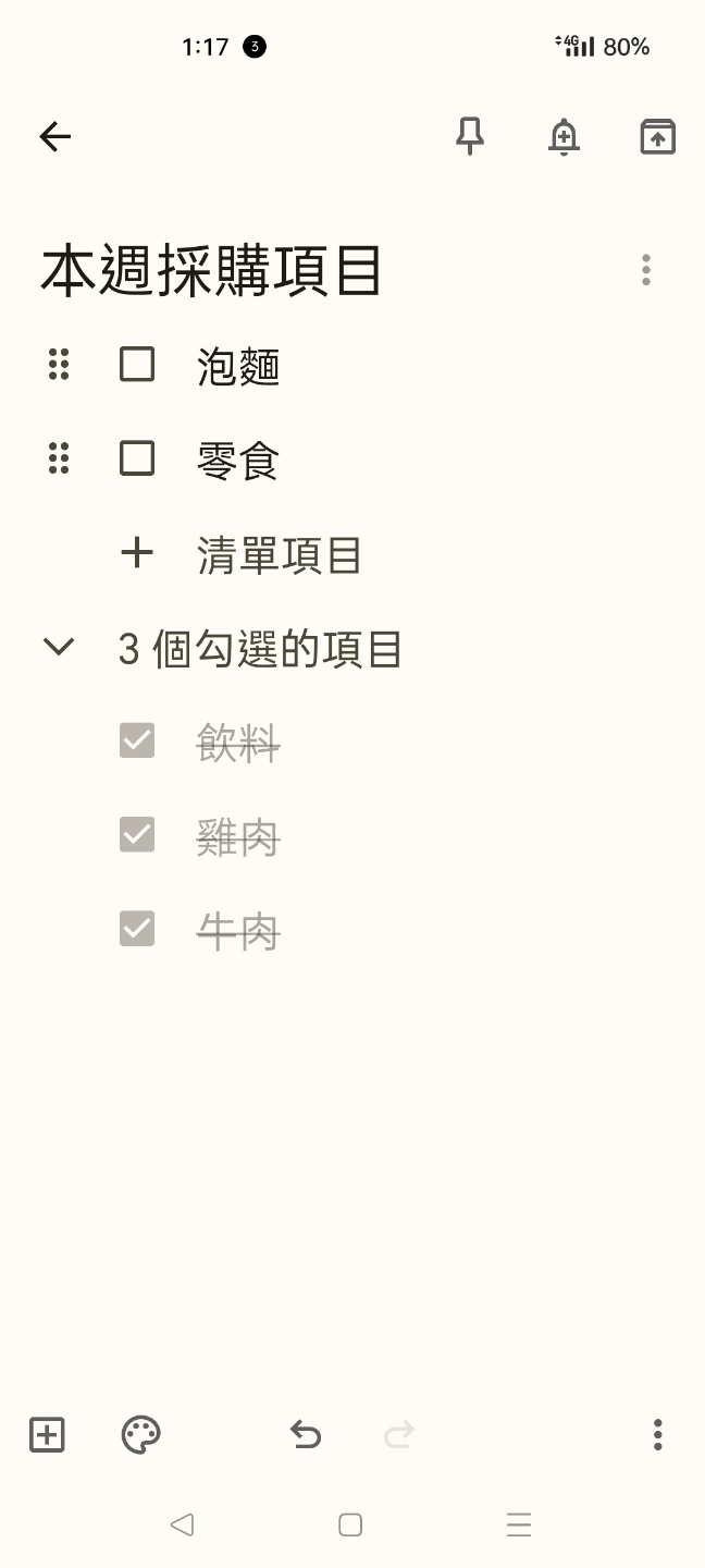 tian wrote:以前用PC電腦時,國...(恕刪) Google keep Android手機有app電腦 登入 瀏覽器Google 帳號找到 Google Keep,也同步上電腦和雲端在下方 使用勾選選單完成項目後勾選