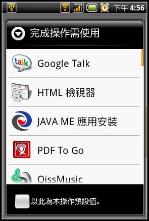 可選擇開啟檔案的軟體,因為Android手機軟體本來就幾乎都內建相關軟體所以絕大部分的檔案都可以正常開啟: