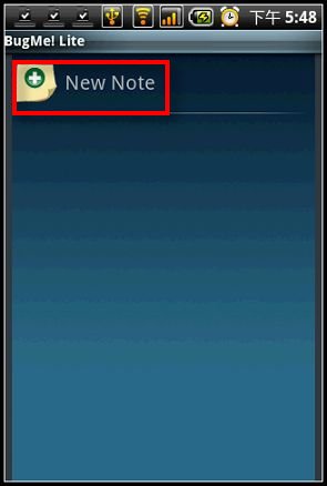 進入後BugMe! Lite後點選"New Note"新增記事,並可以在記事上面註記文字(不打也OK):